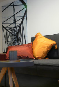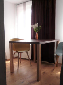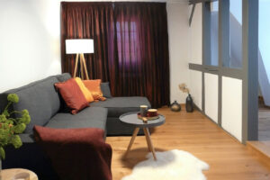 Eine Wohnung mit Blick auf den malerischen Marktplatz von Groß-Umstadt. Hier durfte ich mit der Bauherrin aus einer zweckmäßigen, in die Jahre gekommene Wohnung ein modernes „Zuhause für Gäste auf Zeit“ schaffen.